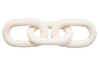 This three link white chain is handcrafted by skilled artisans from natural wood, showcasing the care and individual touch of the craftsmanship. Its interconnected form and organic material make it ideal for coffee table styling, adding a charming and tactile element. *Please note that naturally occurring variations may occur in wood colour, texture and grain.