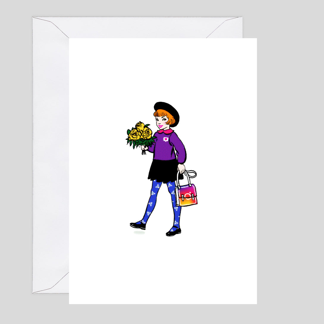 Ceal Warnants' greetings cards play on quaint British illustration pastiches, mixing them up with darkly comic modern insignia, from Nikes to the middle finger.