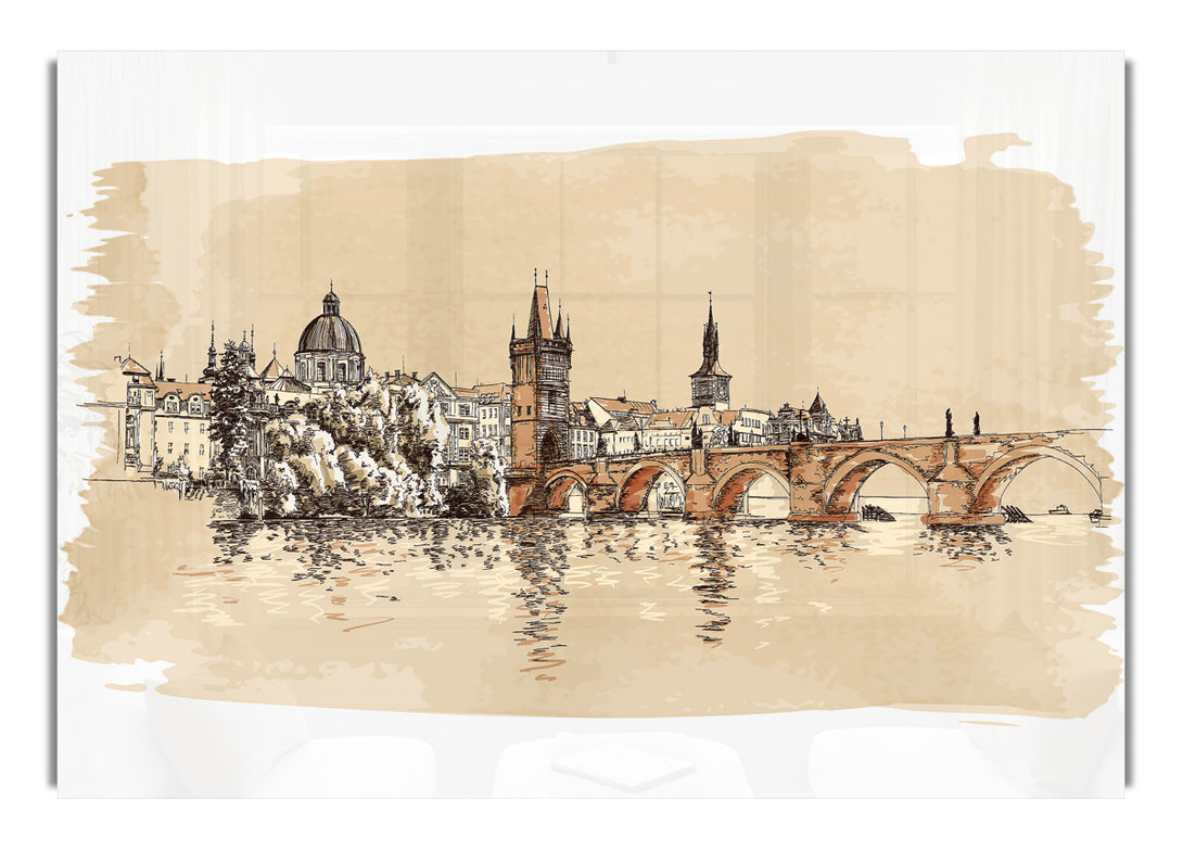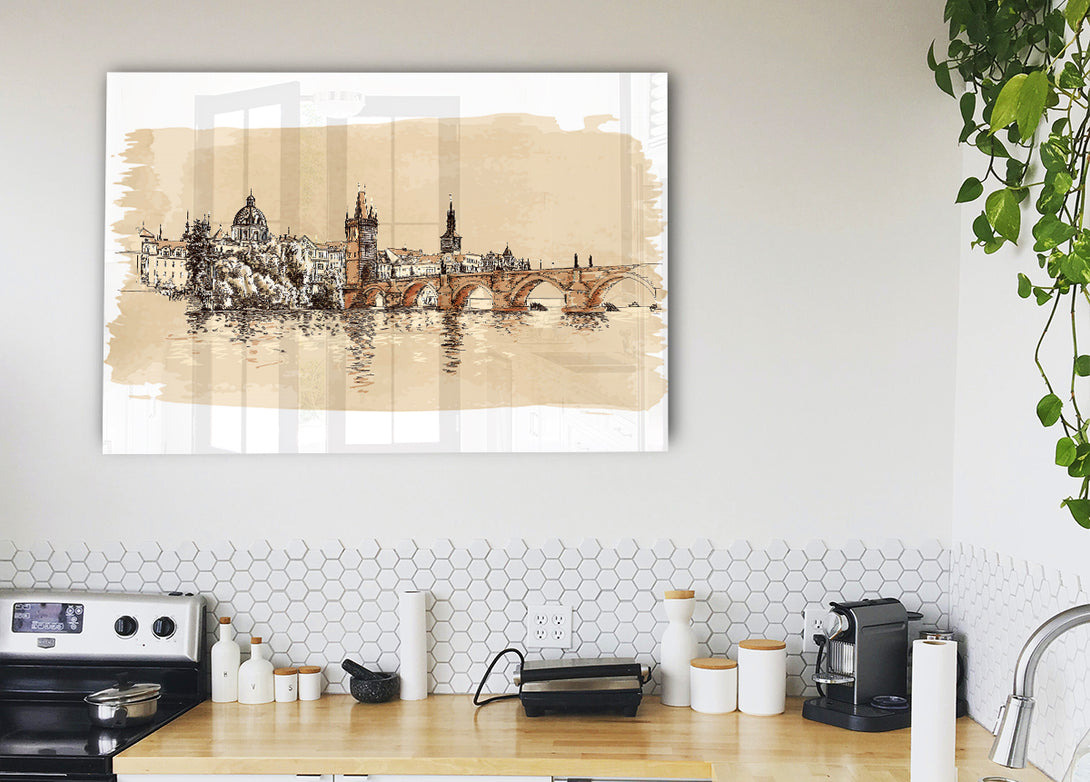 Charles Bridge Watercolour acrylic print, UV printed onto 5mm thick acrylic glass. Comes with everything you need to hang on your wall.