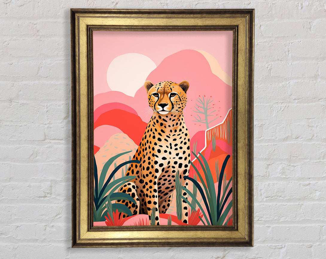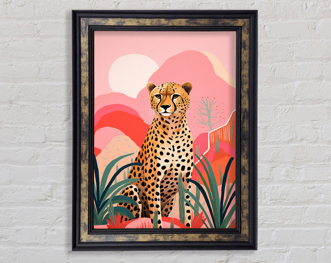 Cheetah Pink Hills Sunset Framed Print