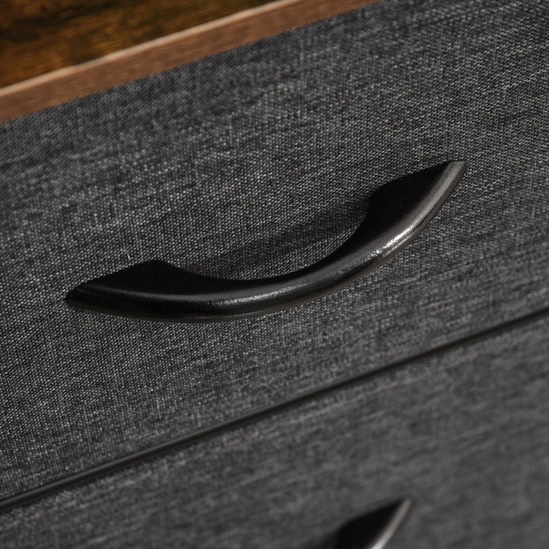 Opt for a soft approach to home storage - go for this fabric drawer unit from HOMCOM. Comes with three small drawers for discreet storage, whilst the shelves provide open display room for a mix. The frame, made from metal, ensures a sturdy core structure, with adjustable bottom feet to keep the balance at all times. Finished with wood-effect handles on the drawers to open and close them easily.