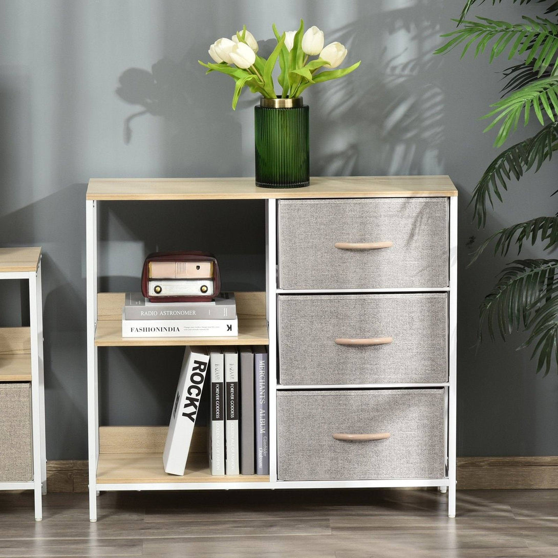 Chest of Drawers Storage Dresser Cabinet Organizer with 3 Fabric Drawers and 2 Display Shelves for Living Room