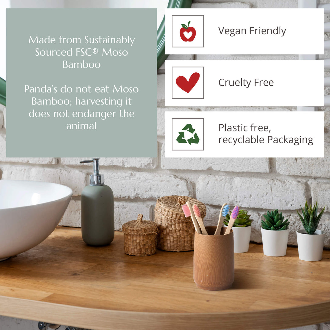 Start your child’s eco-journey off with these multi-coloured bamboo toothbrushes. Each manual toothbrush is made from a single piece of naturally sustainable FSC® 100% certified bamboo. The package includes four soft-bristled biodegradable children’s toothbrushes in a recyclable, plastic-free box.