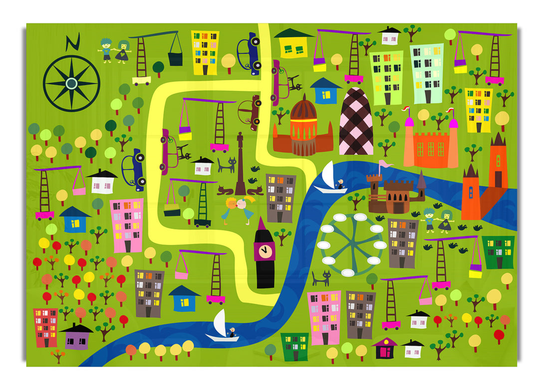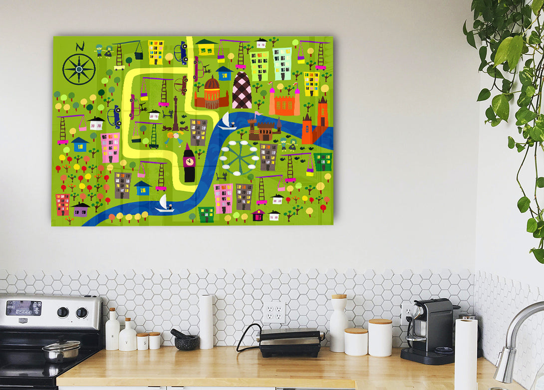 Childs Map Of The City acrylic print, UV printed onto 5mm thick acrylic glass. Comes with everything you need to hang on your wall.