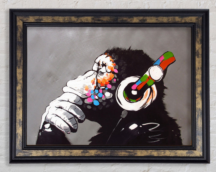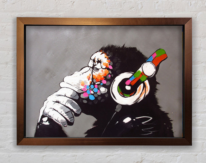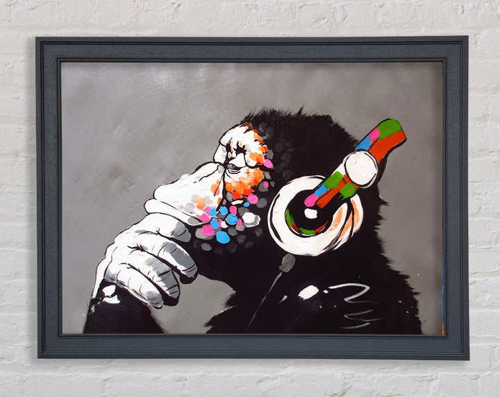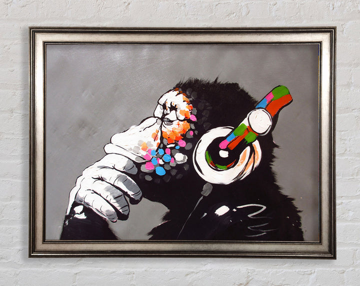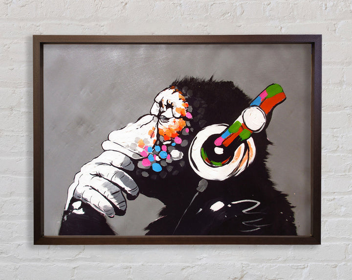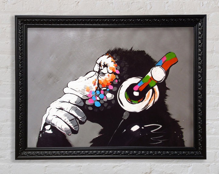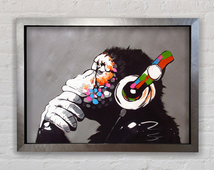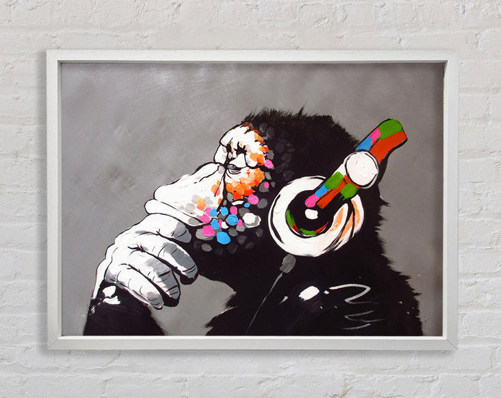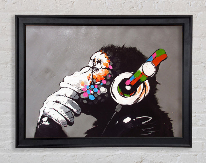 Add a touch of whimsy and sophistication to your space with the Chimp Headphones Thinking Framed Print. This unique framed art piece captures a thoughtful chimpanzee wearing headphones, adding a playful yet intellectual vibe to any room. Available in six sizes, from small to oversized, it can fit perfectly in any space, whether it's your living room, office, or bedroom. Choose from a variety of colours to match your decor effortlessly. Handmade in the United Kingdom, this print is crafted with care and attention to detail. Plus, it comes ready to hang, making it easy to enhance your home with this charming and intriguing piece of art.