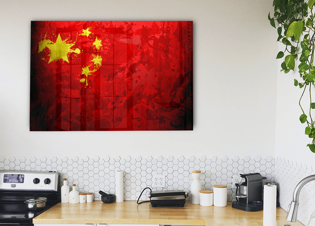 China Flag Grunge acrylic print, UV printed onto 5mm thick acrylic glass. Comes with everything you need to hang on your wall.