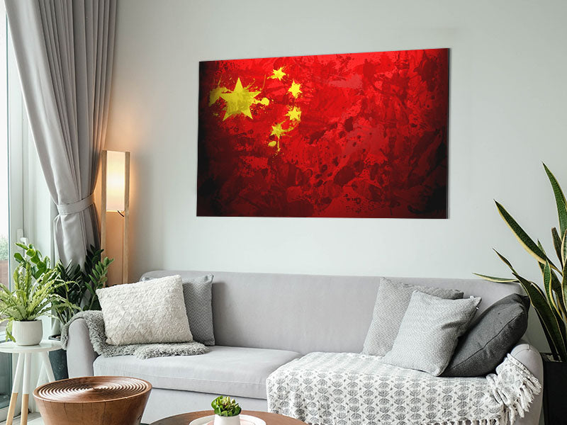 China Flag Grunge Printed on brushed aluminium dibond. A modern way to display art and easy to maintain.