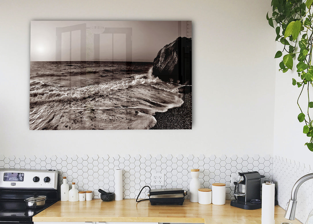 Chocolate Ocean Sun acrylic print, UV printed onto 5mm thick acrylic glass. Comes with everything you need to hang on your wall.