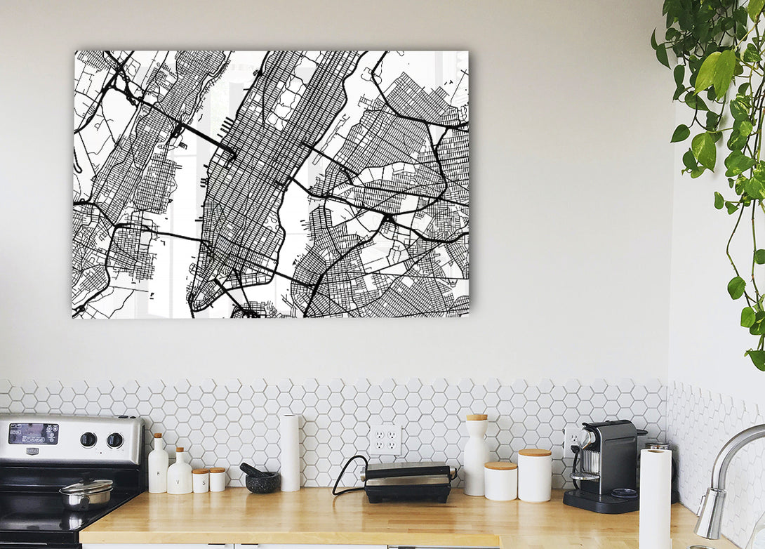 City Map acrylic print, UV printed onto 5mm thick acrylic glass. Comes with everything you need to hang on your wall.