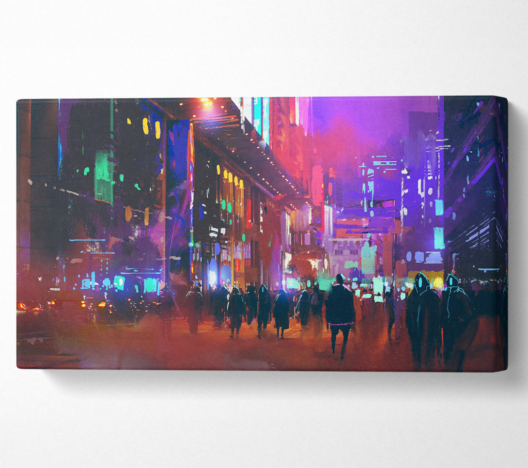 City Of Night People wide canvas, printed on coated polyester canvas. Mounted on to a 44mm box frame, ready to hang.