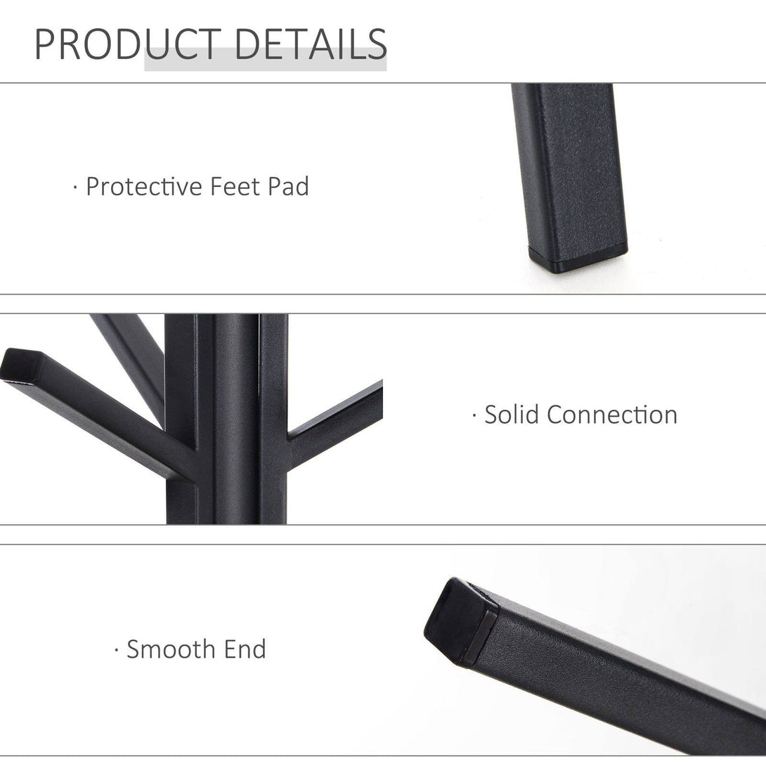 This functional coat rack from HOMCOM is designed to handle your entire family's coats and other heavy garments including clothing accessories such as hats, scarves, and beanies. It combines a freestanding coat rack and a display stand in one easy to use unit. A compact and modern design helps you save in your hallway or entryway. What's more, you can place it in any corner, wherever you want such as the bedroom, garage, or office. It’s made from sturdy and strong steel metal with 9 hooks and a bottom shelf for all your belongings.