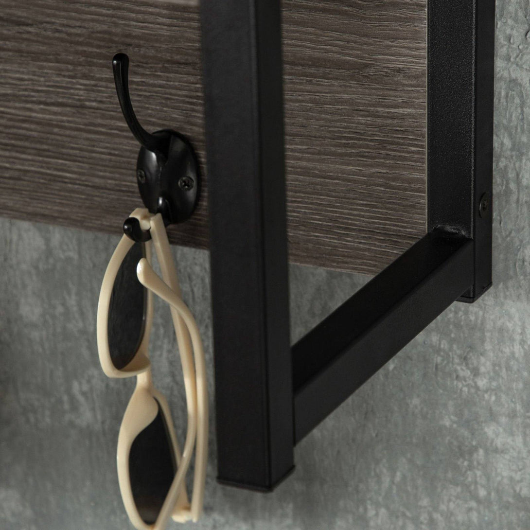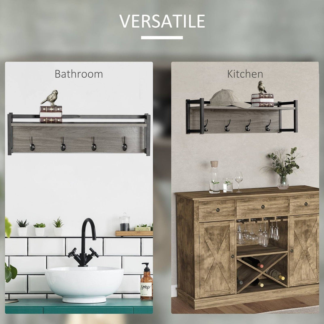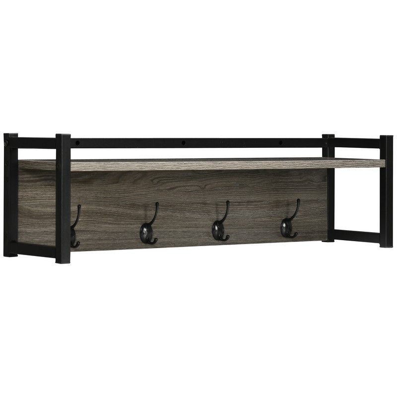 Easy, convenient storage for the hallway, the kitchen and beyond: say hello to this hanging rack from HOMCOM. A metal frame which is strong, it's easy to fix to the wall/surface you choose. Comes with four hooks to hang outerwear, garments, towels etc,, with a top shelf for extra holding room. Natural wood effect with a rustic edge, this piece will look great, no matter where you decide to fix it.