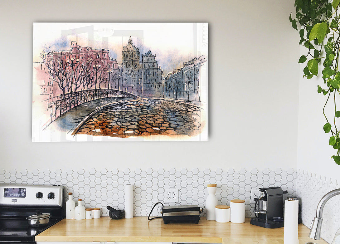 Cobbled Streets acrylic print, UV printed onto 5mm thick acrylic glass. Comes with everything you need to hang on your wall.
