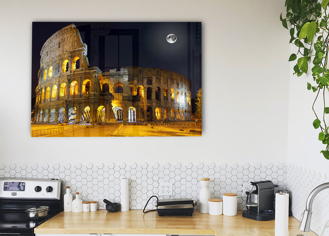 Colosseum Moonlit Night acrylic print, UV printed onto 5mm thick acrylic glass. Comes with everything you need to hang on your wall.