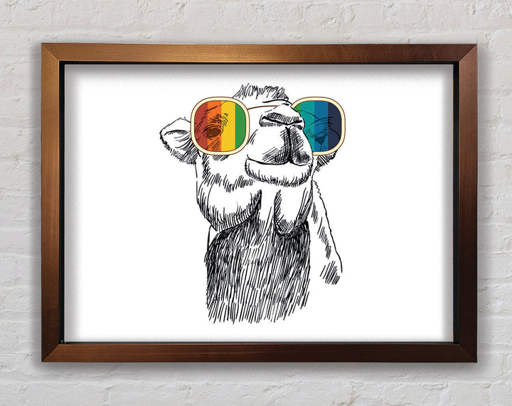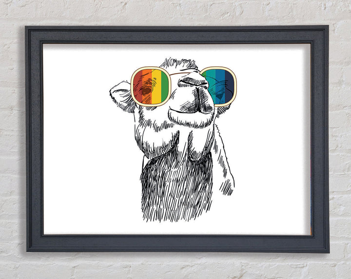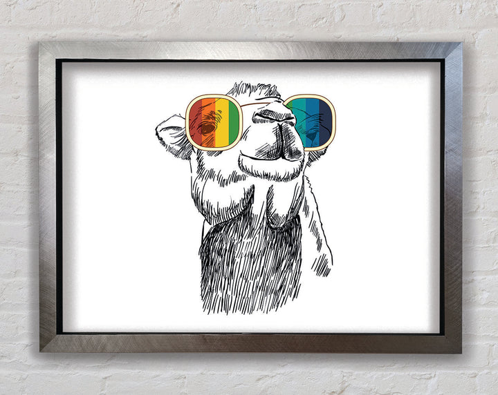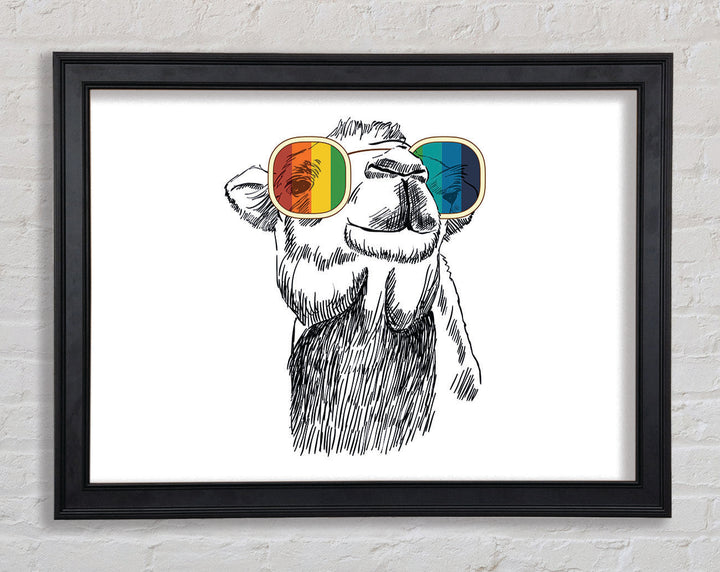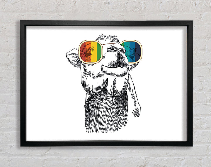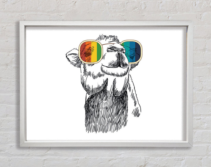 Brighten up your space with the Colourful Glasses Camel Framed Print, a playful piece of framed art that adds charm and personality to any room. This delightful print features a whimsical camel sporting vibrant glasses, guaranteed to bring a smile to your face. Available in six sizes, from small to oversized, you can find the perfect fit for your wall. Choose from a variety of colours to match your décor seamlessly. Each piece is handmade in the United Kingdom, ensuring top-notch quality. Ready to hang right out of the box, this framed art makes decorating easy and fun. Transform your living space with this unique and cheerful addition!