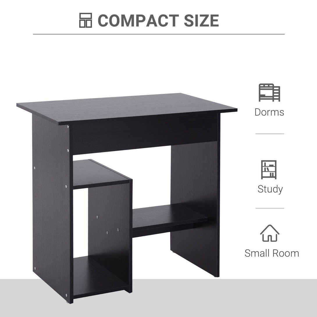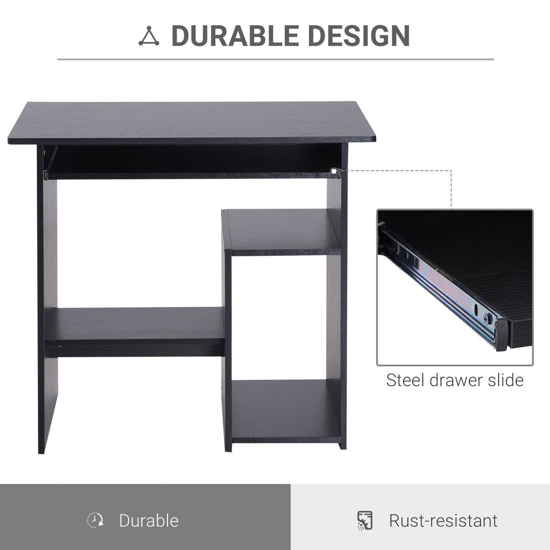 Compact Small Computer Table Wooden Desk Keyboard Tray Storage Shelf Modern Corner Table Home Office Black