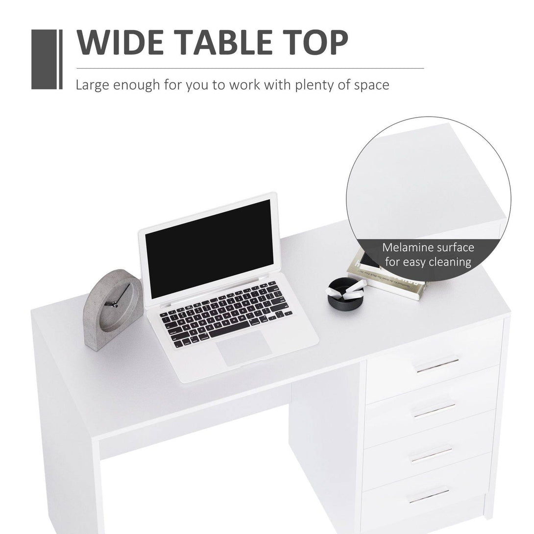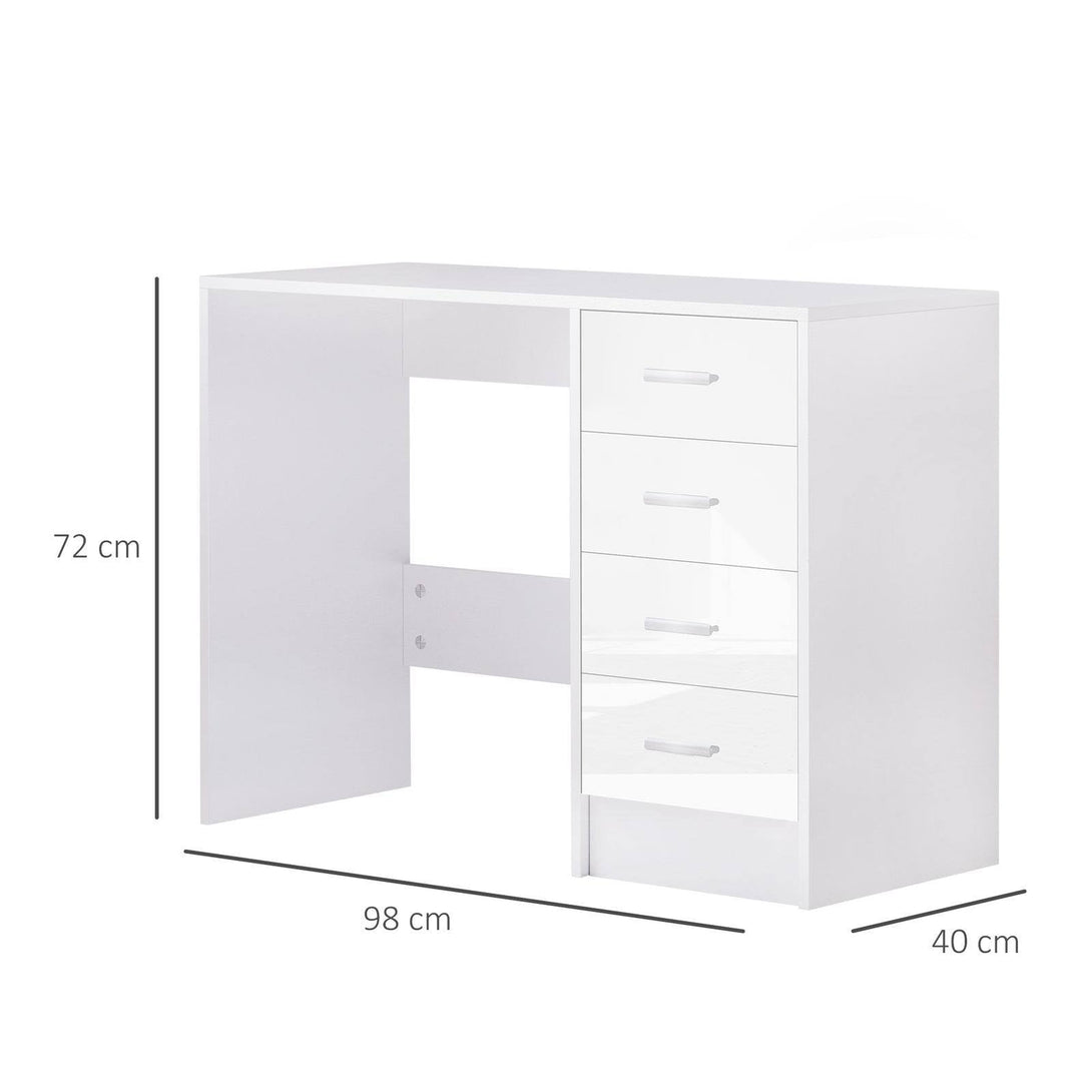Are you working in home or office and need a new desk to fit your new lifestyle? Let HOMCOM's study table get the most out of your space and your work day with the desktop and spacious storage space. Four drawers provide space to store books, important papers, photos. The high gloss design adds a charm to your work place. Besides, the sturdy structure gives you peace of mind than our work desk. Desk with storage from HOMCOM will always bring you a better living experience.