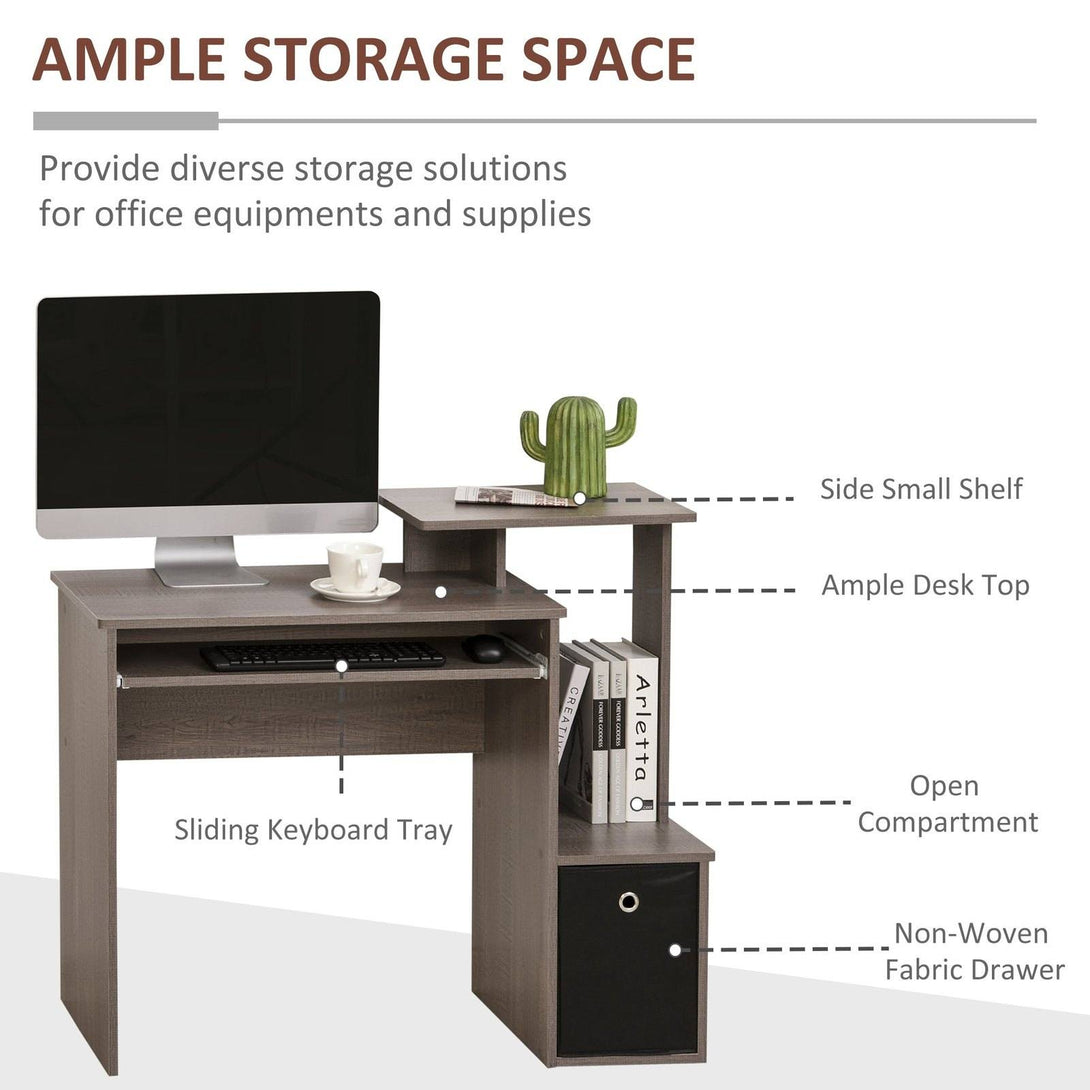 Computer Desk with Sliding Keyboard Tray Storage Drawer Shelf Home Office Workstation Grey