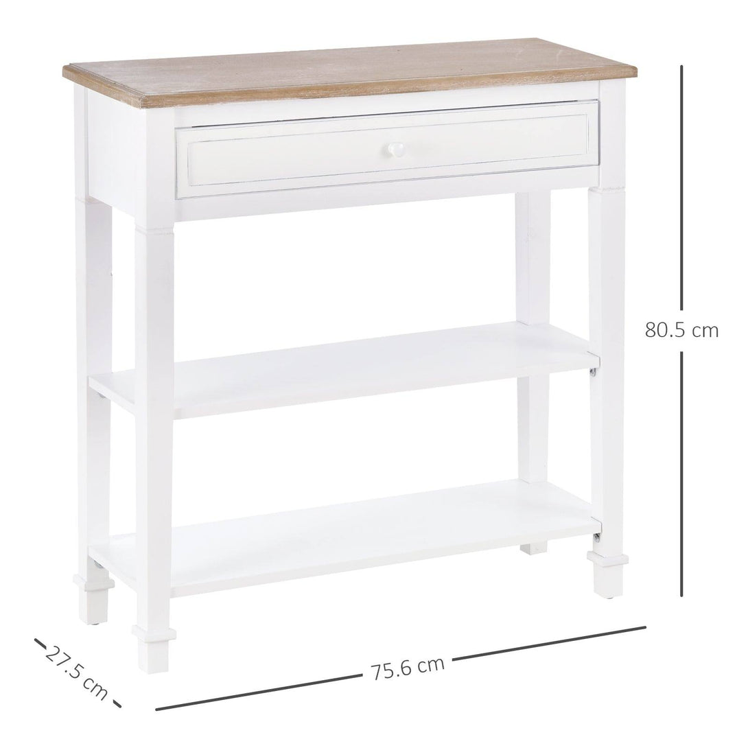 Console Table Hallway Side Desk 1 Drawer 2 Shelves Worktop Handle Retro Elegant Style Home Display Storage for Bedroom Livingroom