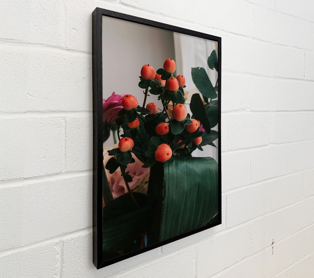 Coral Berries And Green Leaf