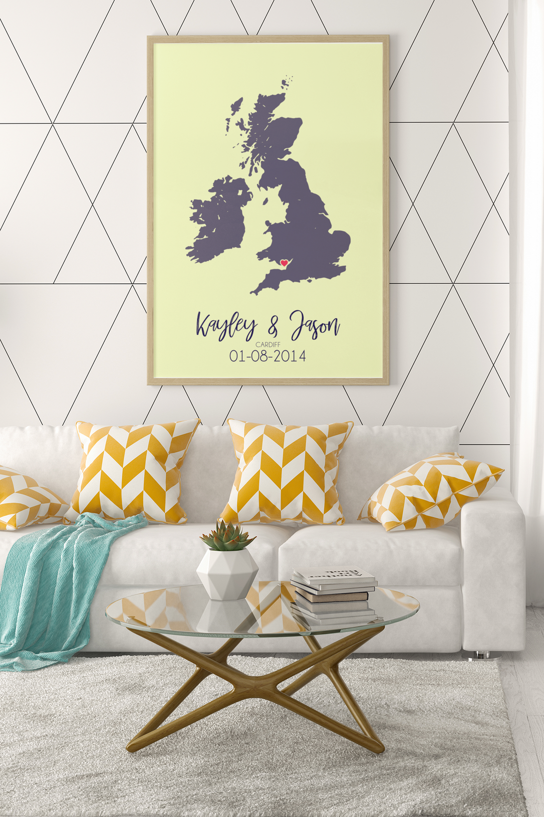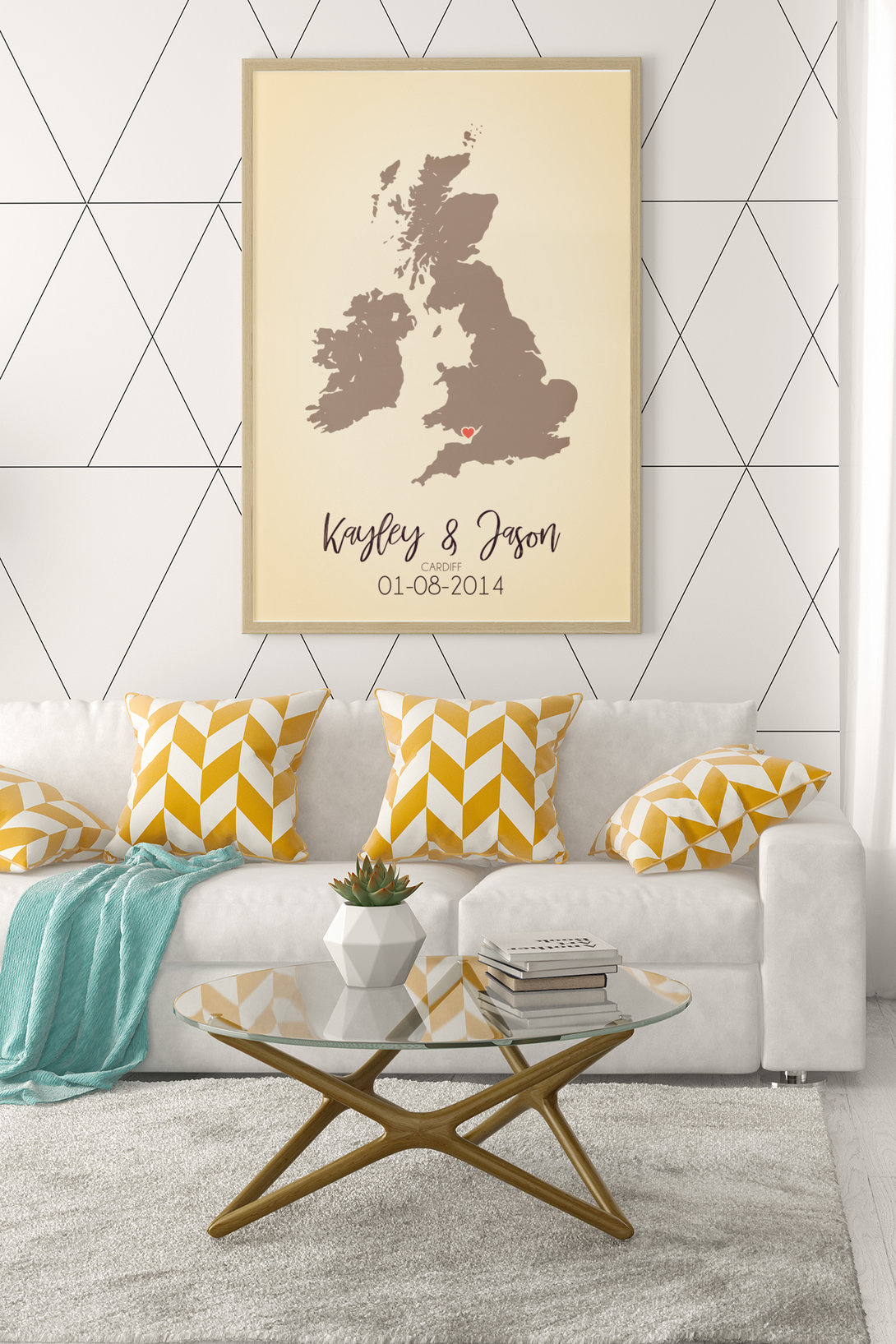 Couples United Kingdom Map with Special Dates & Heart Personalised Wall Decor Print with 10 New Styles