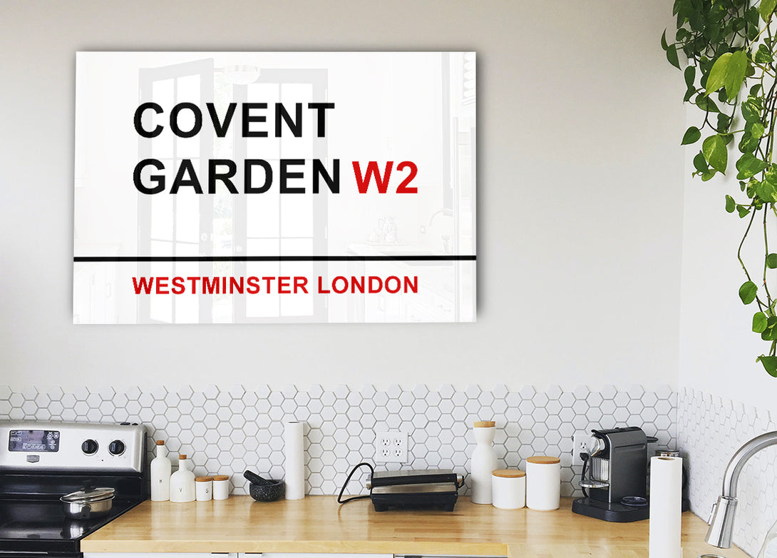 Covent Garden Signs acrylic print, UV printed onto 5mm thick acrylic glass. Comes with everything you need to hang on your wall.