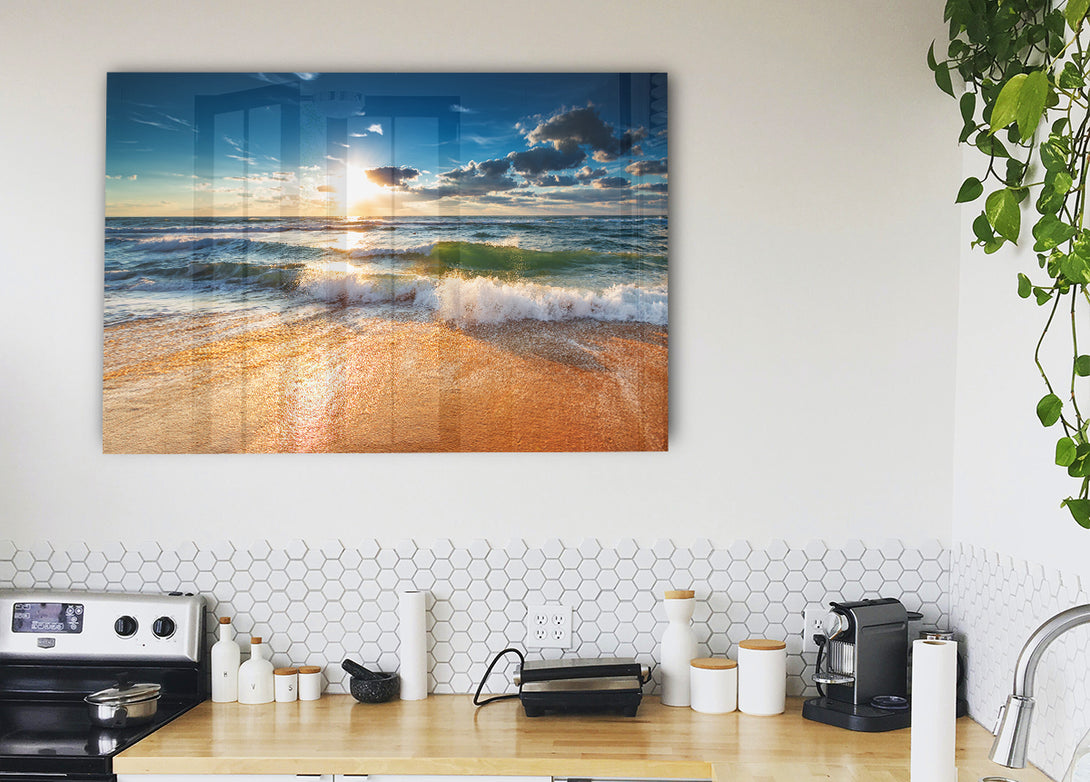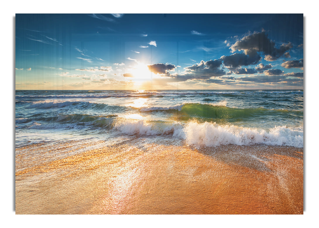 Crashing blue waves on the shore acrylic print, UV printed onto 5mm thick acrylic glass. Comes with everything you need to hang on your wall.