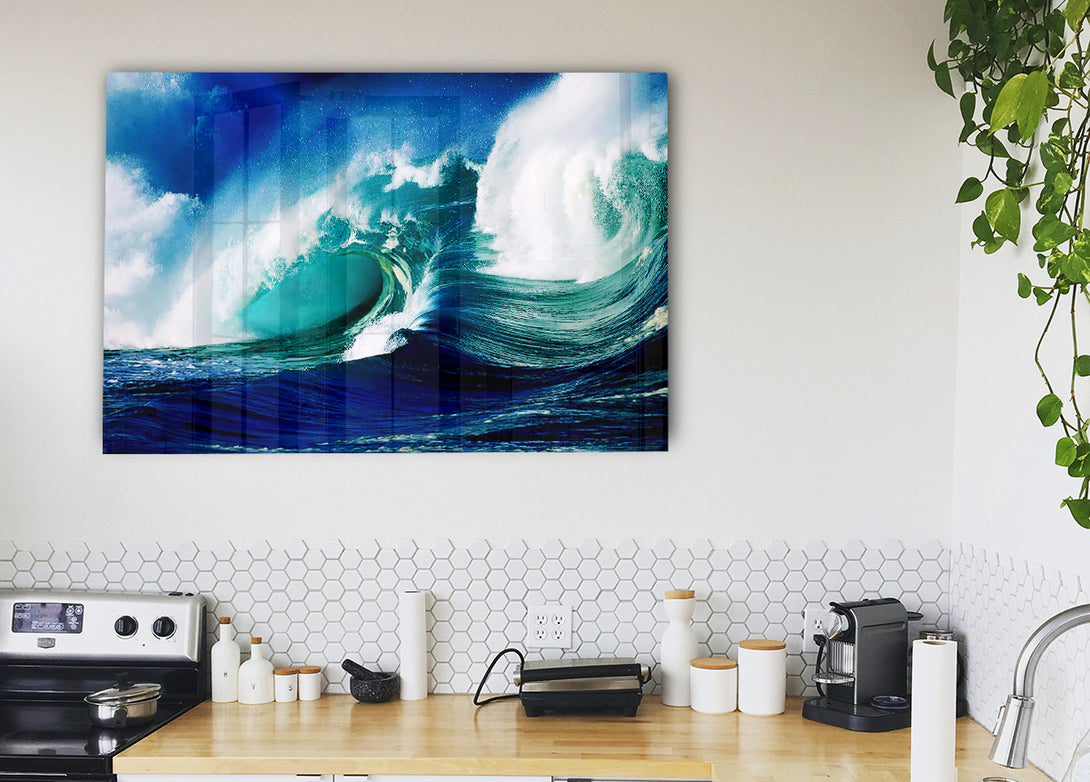 Crashing Ocean Waves acrylic print, UV printed onto 5mm thick acrylic glass. Comes with everything you need to hang on your wall.