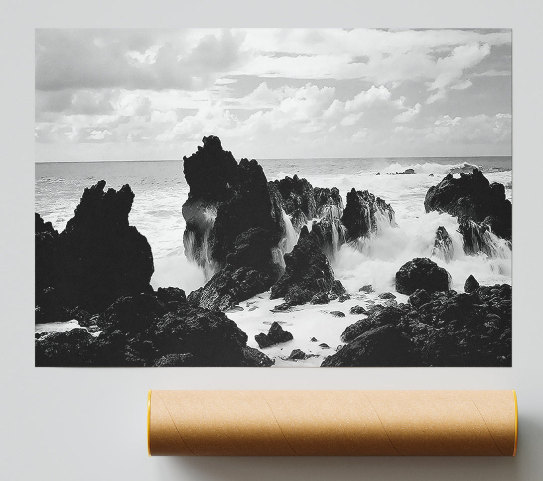 Our Crashing Waves Over Rocks B n W Poster is printed 260 GSM premium lustre paper that offers vibrant colours and exceptional detail.