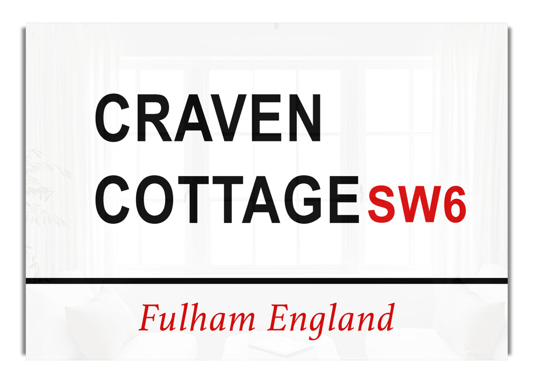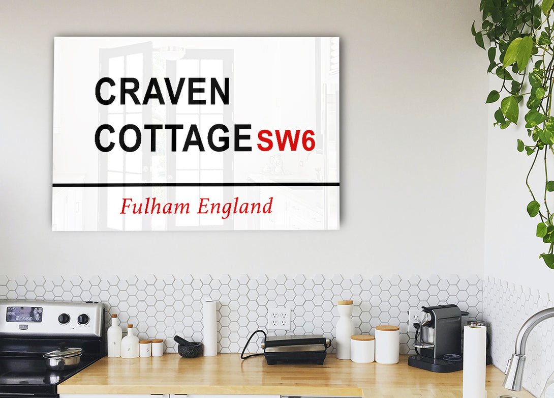 Craven Cottage Signs acrylic print, UV printed onto 5mm thick acrylic glass. Comes with everything you need to hang on your wall.