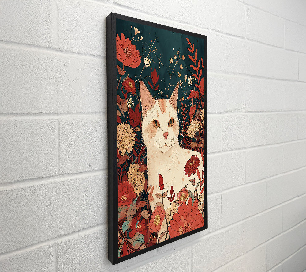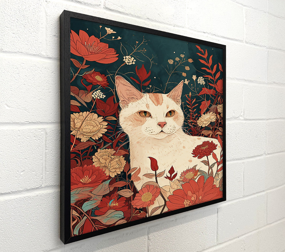 Crimson Cat Among Flowers