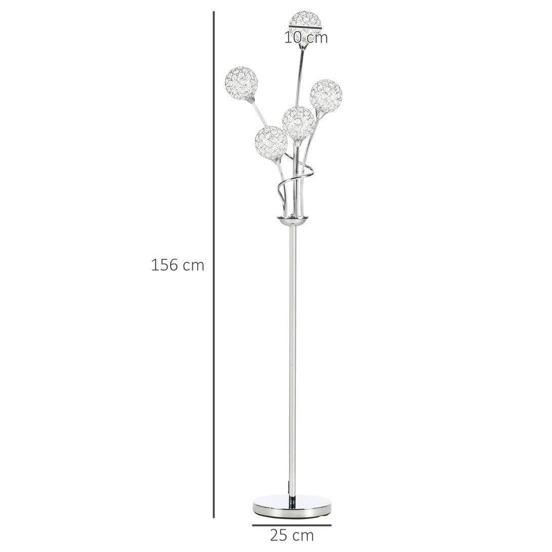 This HOMCOM lamp brings that added sparkle into your home - which you didn't realise you needed. The thin and sleek metal frame is fitted with five ball shades; they're formed of an abundance of crystallite beads - as the light shines through it'll create a glistening atmosphere. Comes with a foot pedal so you can turn this lamp on and off easily. Brighten up your home and living space, instantly.