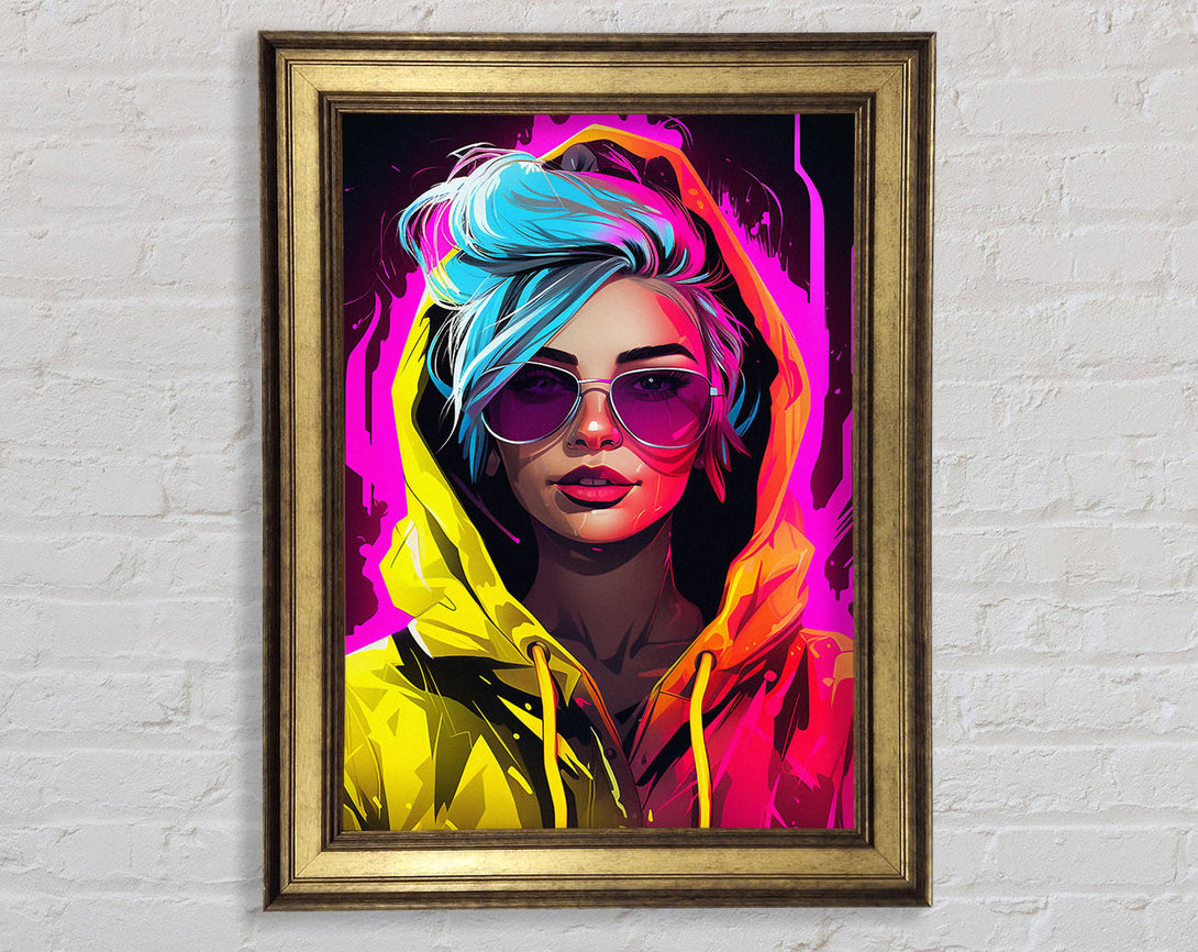 Cyberpunk Girl Yellow Hoodie Framed Print