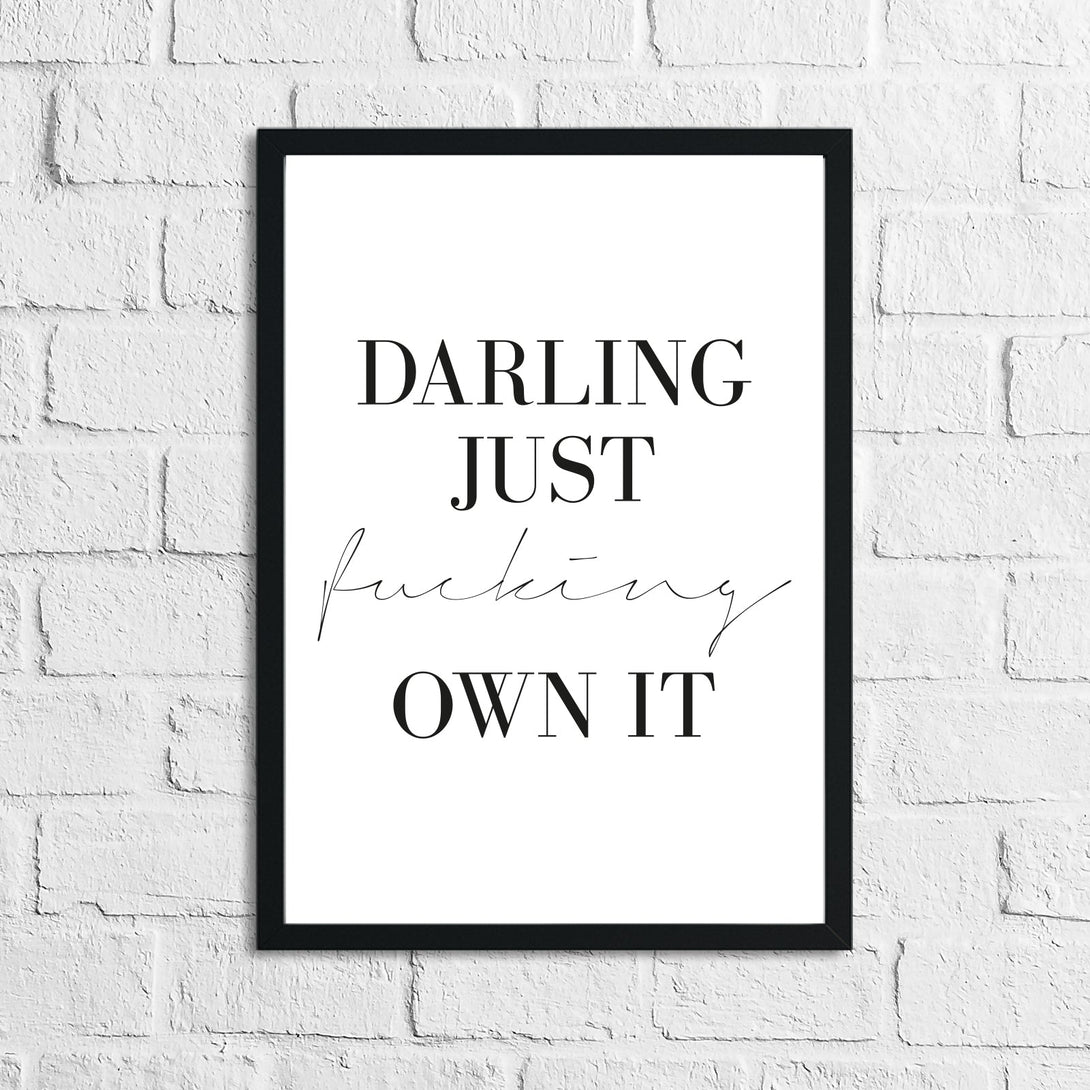 Darling Just Fucking Own It Simple Home Inspirational Wall Decor Print