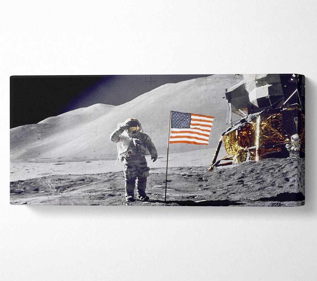 David Scott Gives Salute canvas, printed on coated polyester canvas. Mounted on to a 44mm box frame, ready to hang.