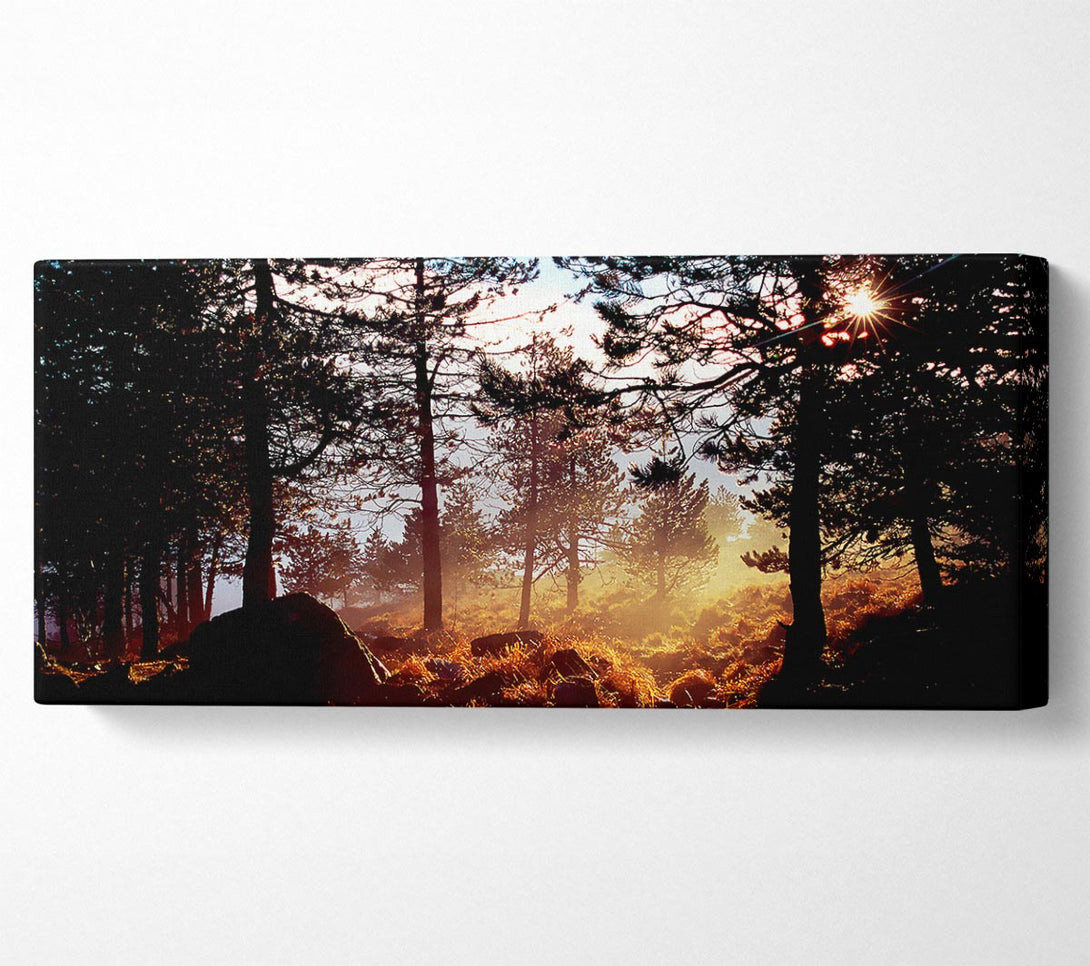 Day Break In The Forest canvas, printed on coated polyester canvas. Mounted on to a 44mm box frame, ready to hang.