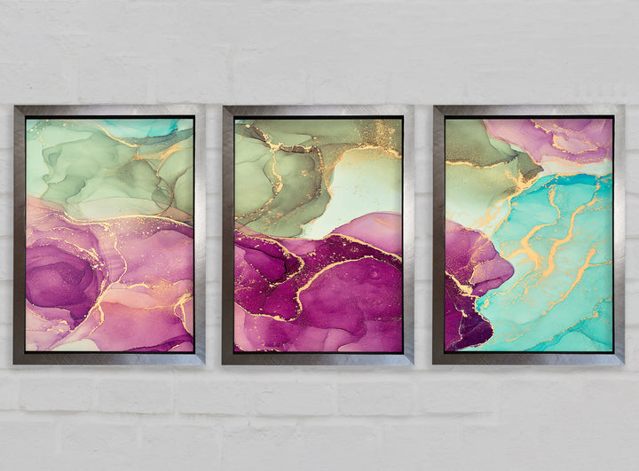 Deep Purple Glitter 3 Piece Prints