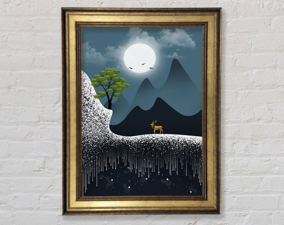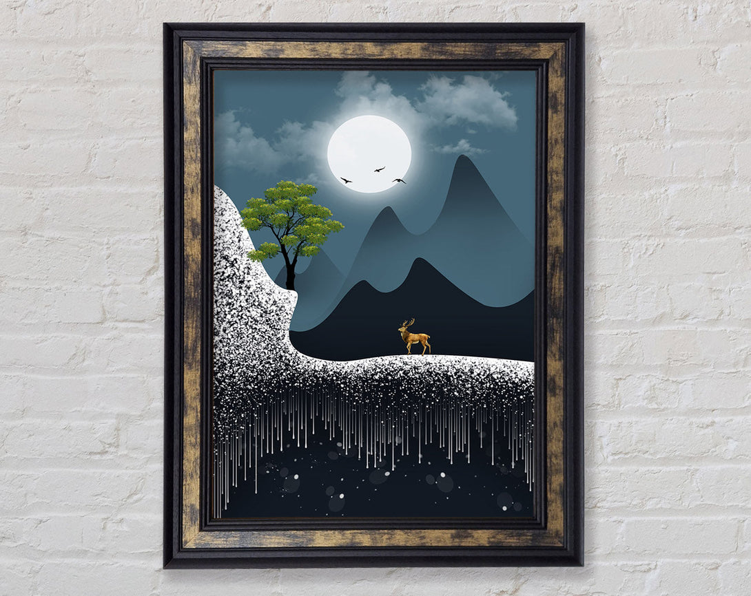 Deer Moon Walk Framed Print