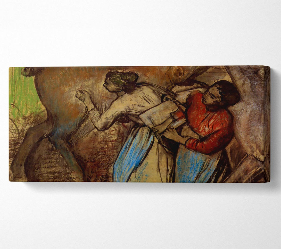 Degas Two Women Washing Horses canvas, printed on coated polyester canvas. Mounted on to a 44mm box frame, ready to hang.