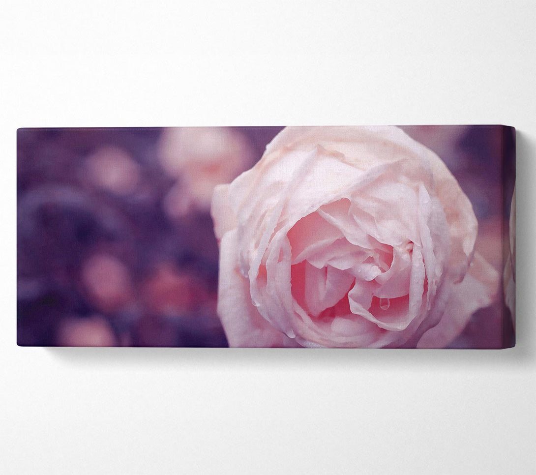 Picture of Delicate Pink Dew Rose Panoramic Canvas Wall Art