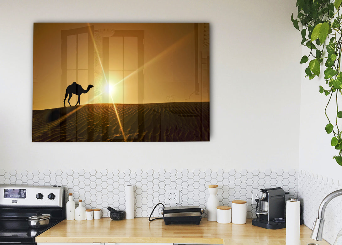 Desert Camel acrylic print, UV printed onto 5mm thick acrylic glass. Comes with everything you need to hang on your wall.