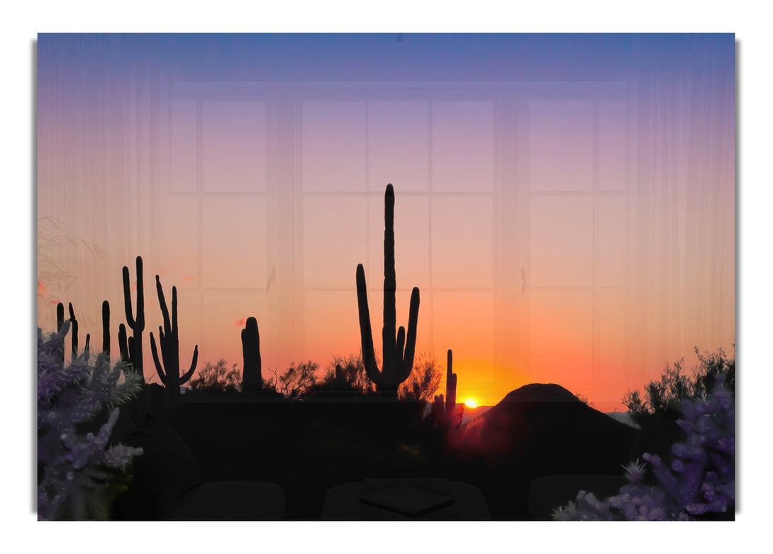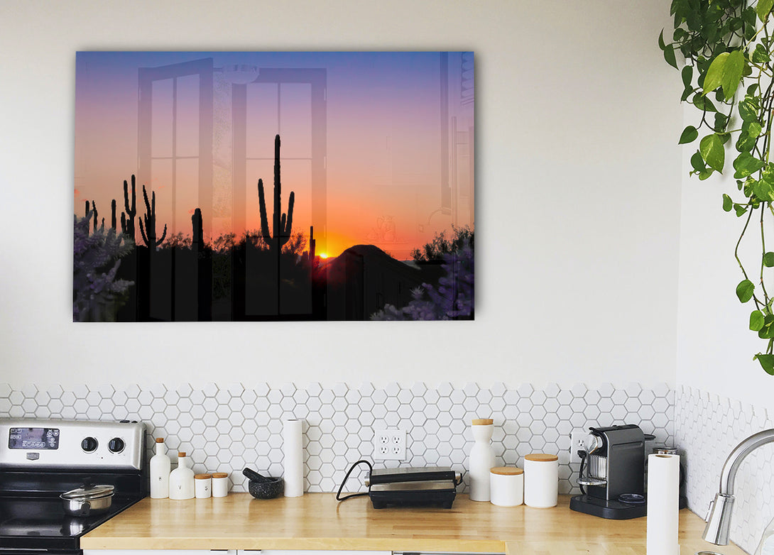 Desert Sun Glow acrylic print, UV printed onto 5mm thick acrylic glass. Comes with everything you need to hang on your wall.