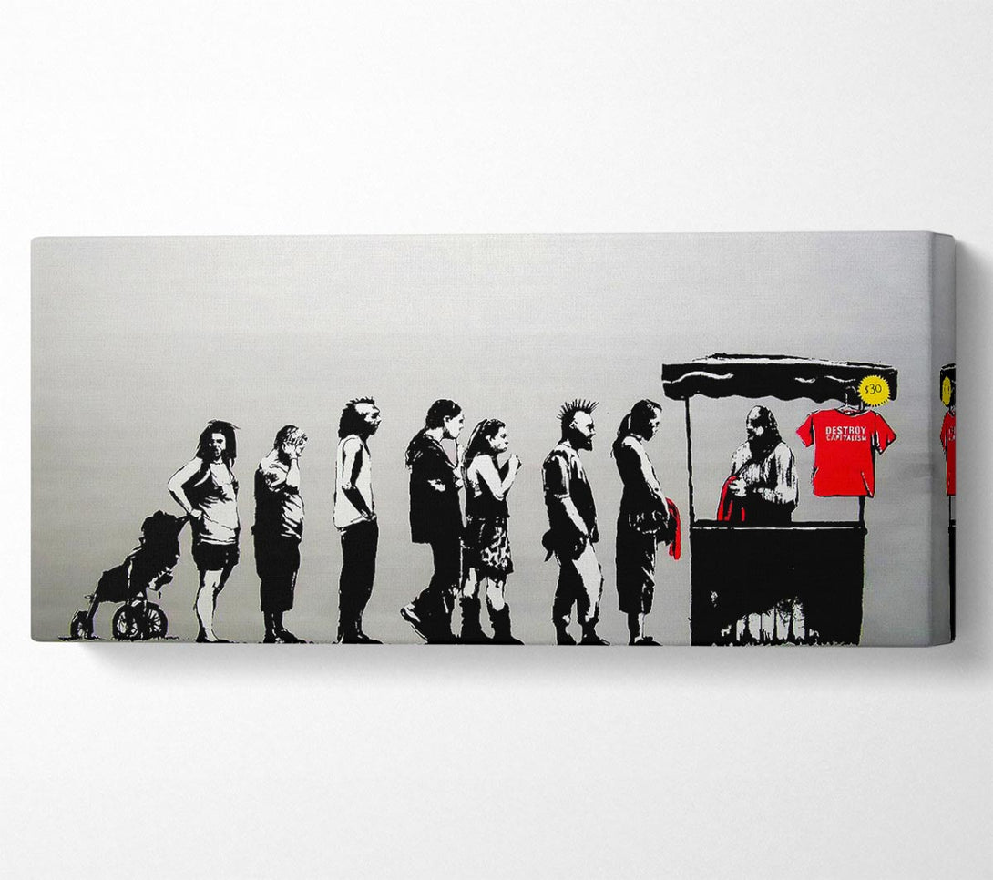Destroy Capitalism canvas, printed on coated polyester canvas. Mounted on to a 44mm box frame, ready to hang.