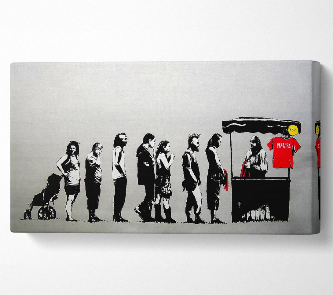 Destroy Capitalism canvas, printed on coated polyester canvas. Mounted on to a 44mm box frame, ready to hang.