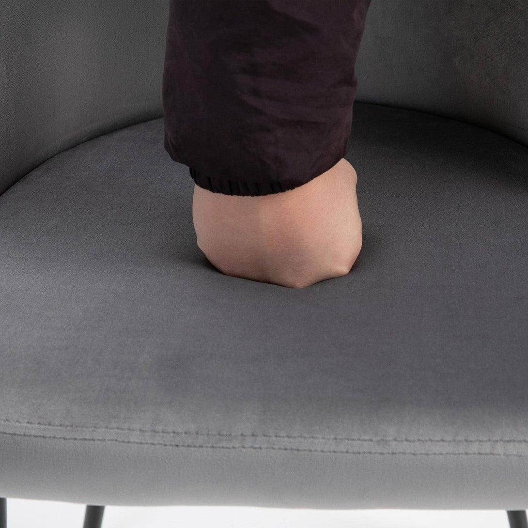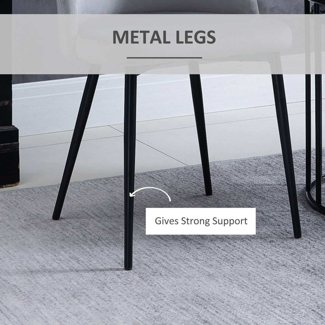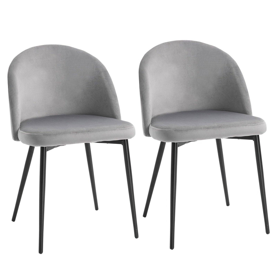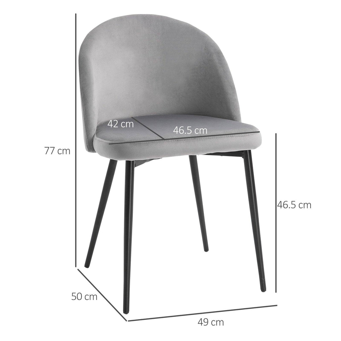 Transform your home and dining space instantly with this set of two chairs from HOMCOM. Armless design with smoothly curved lines gives both seats a soft and elegant look which works almost everywhere. Comfortable as it is beautiful, they combine a curved back for you to lean into, deep cushioning on the seats and a wide seat, whilst the velvet-feel polyester fabric is soft and smooth on the skin. Perfect for the living room, bedroom and office.