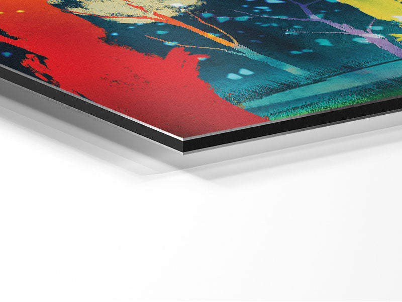Disco Trees Printed on brushed aluminium dibond. A modern way to display art and easy to maintain.