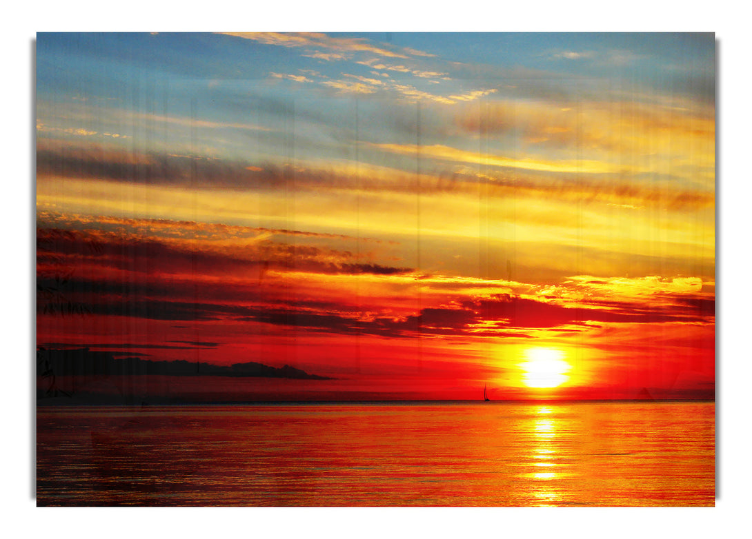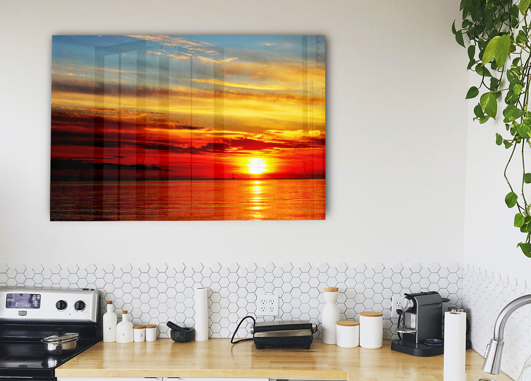 Distant Ocean Sailboat Sunset acrylic print, UV printed onto 5mm thick acrylic glass. Comes with everything you need to hang on your wall.