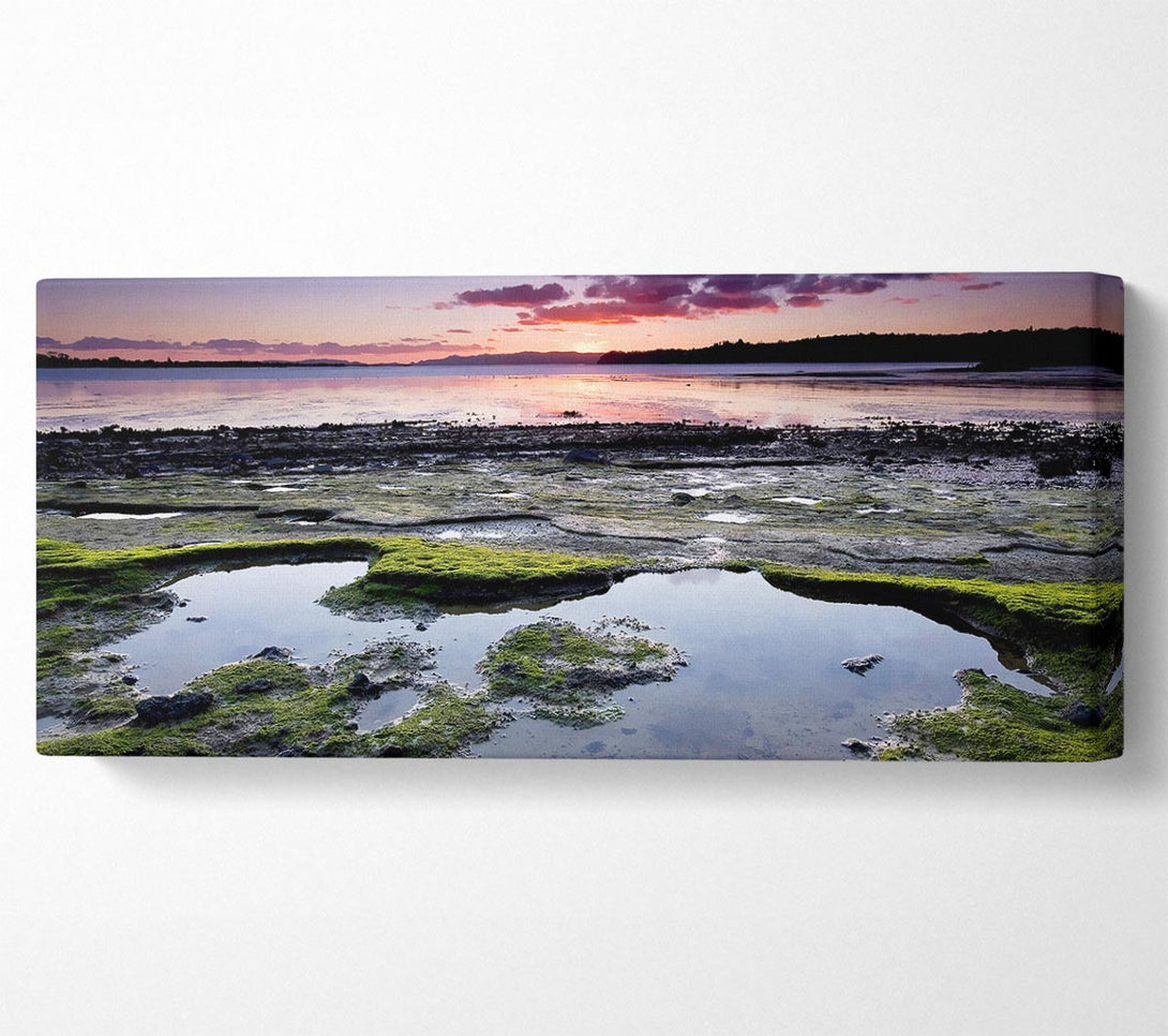 Distant Ocean Sunrise canvas, printed on coated polyester canvas. Mounted on to a 44mm box frame, ready to hang.