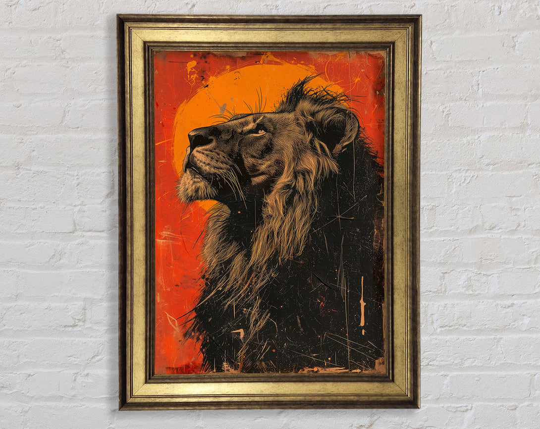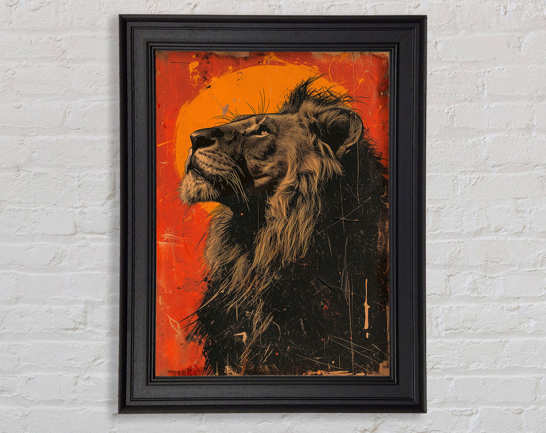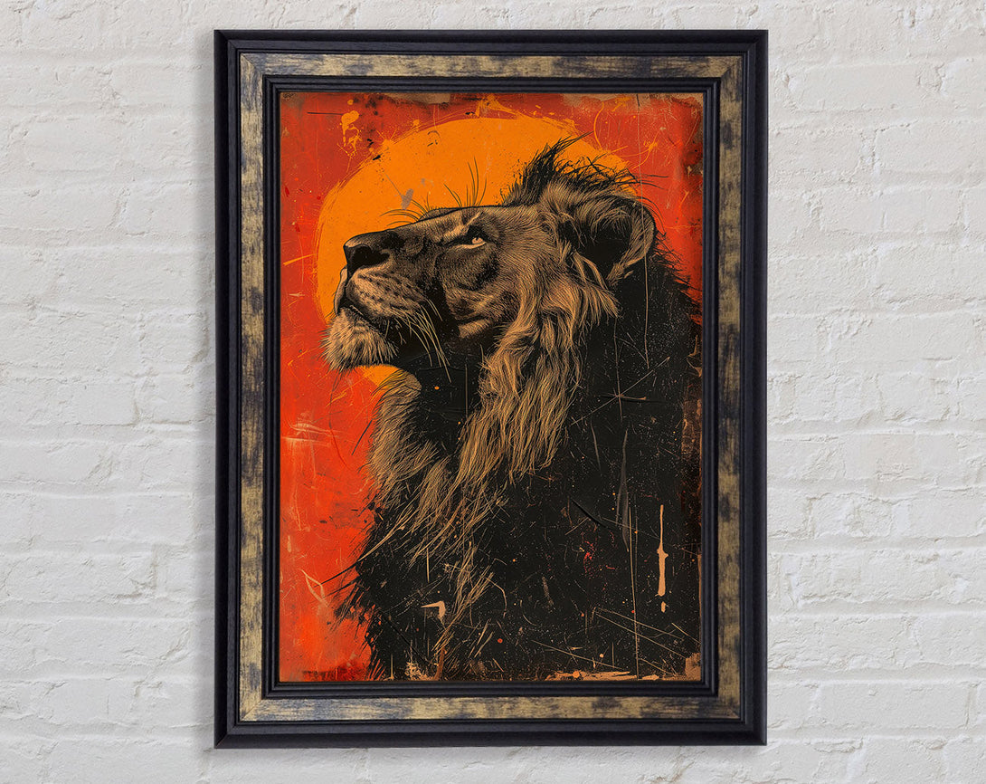 Distressed Graffiti Lion Looking Up Framed Print