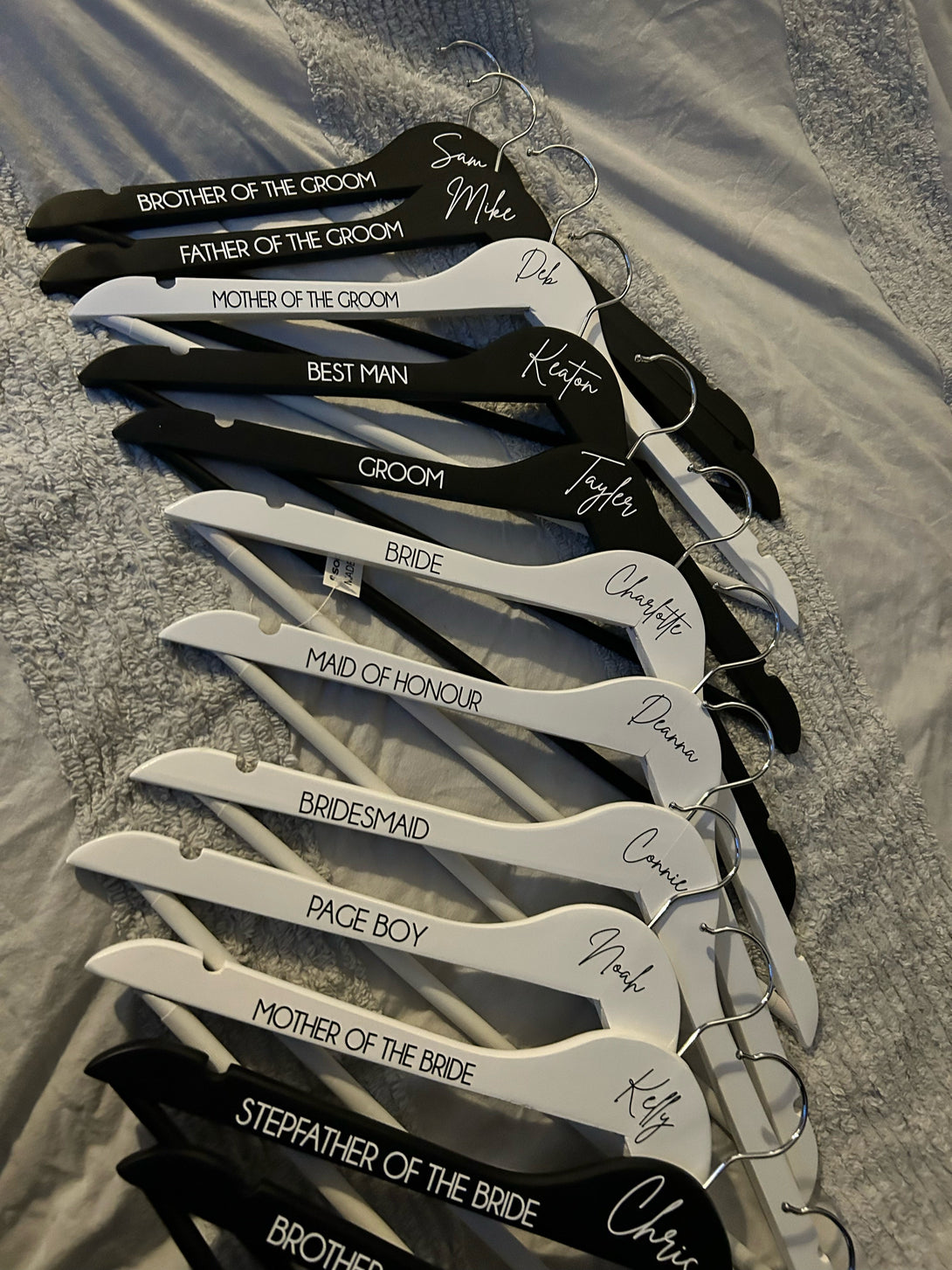 DIY Personalised Wedding Fancy Font - Bride Bridesmaid Maid Of Honour Hanger Decals - Roles & Names Sticker